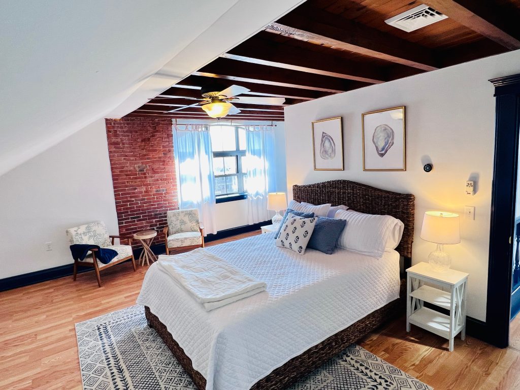 Enjoy two full kitchens, multiple living and dining areas, and five total bedrooms spread across two neighboring units — ideal for guests who want to gather for meals or celebrations while still having their own quiet retreat. Each space features a blend of historic character and modern comfort, with high ceilings, hardwood floors, and contemporary furnishings that reflect Portland’s coastal charm.